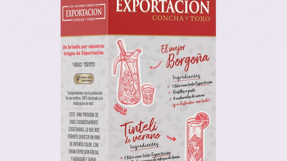 El tradicional vino de todos los chilenos, Exportación Concha y Toro, acaba de lanzar una edición limitada de sus tetra pack tinto y blanco de 2 litros, bajo el nombre de “El Bar de Exportación”, que incluirá las mejores recetas para que todos puedan disfrutar un rico cóctel de manera simple y en cualquier lugar.